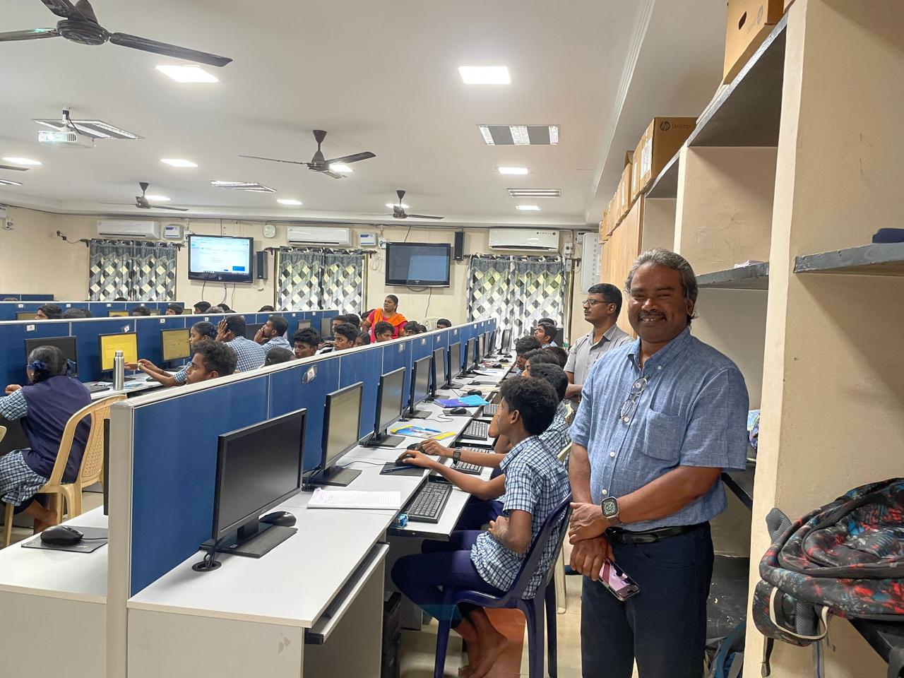 முன்னாள் மாணவர் நன்கொடையாளரான ஏ. கணேசன், ஜூலை 2024 இல் கணினி பயிற்சி அமர்வைப் பார்வையிட்டார். Go Back